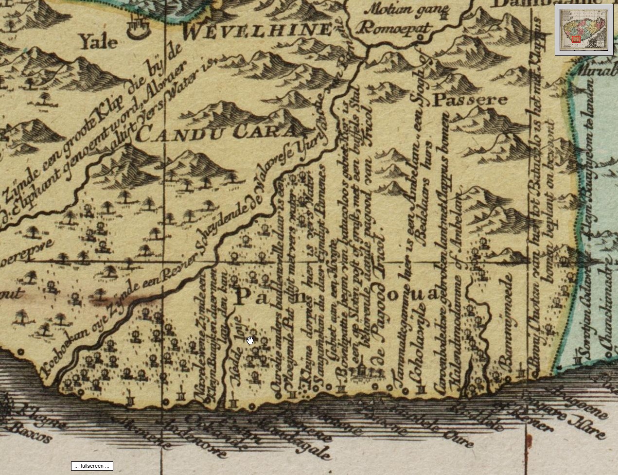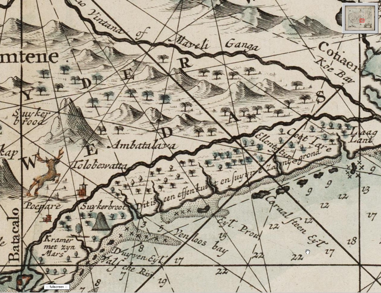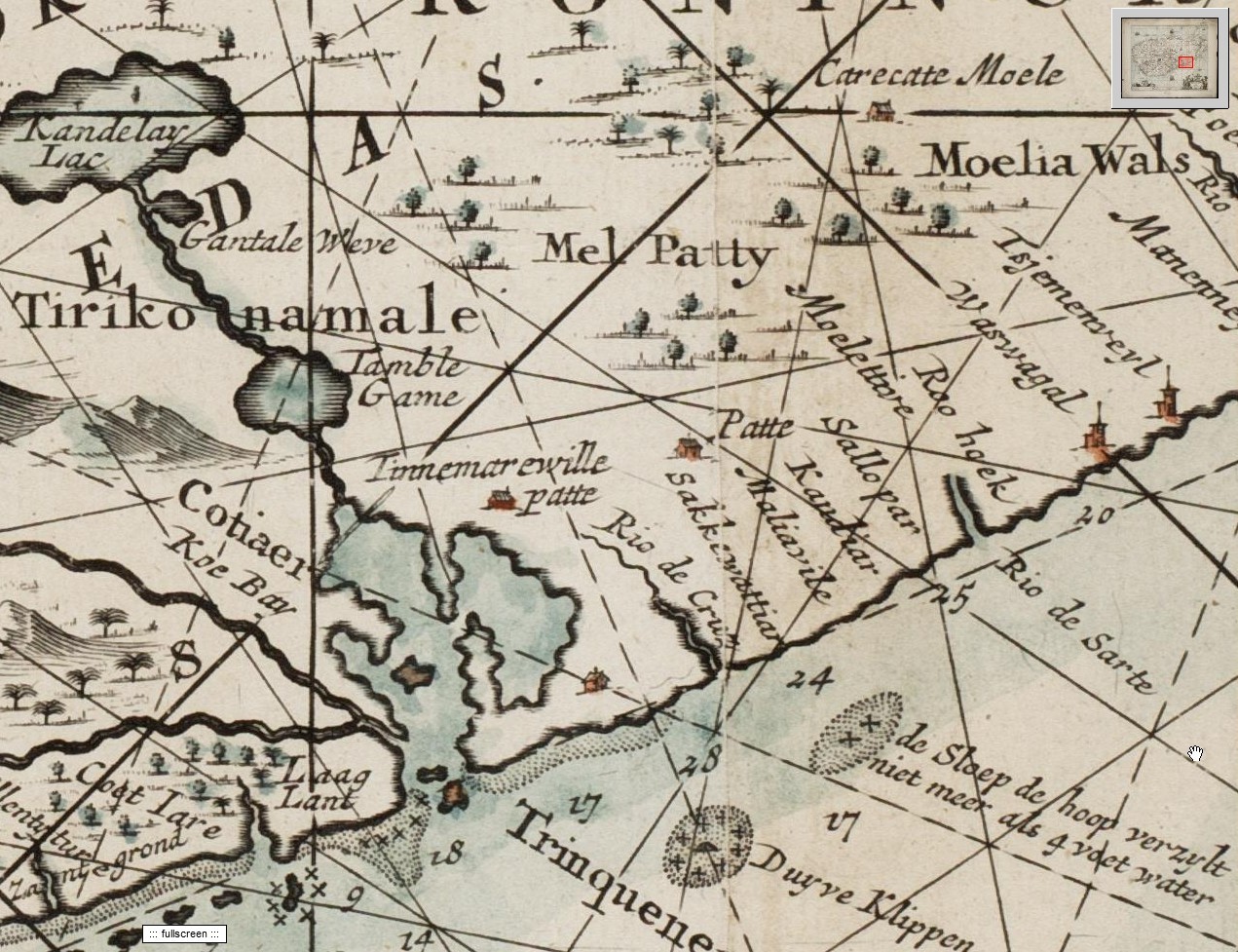 B. Van Leir map, 1751. This map is kept in the Hague in Brussels. What makes this Dutch map, so important, is that it contains all the names of the districts of then Sinhale. For example, Panangama, which today consisting of parts of Mannar, Vavuniya and Mullativu districts. Anurajapura, has been made smaller, as initially, it consisted of parts of Mannar and was all the way to the coast and also what is today north Triquenamale district. Many of the districts bore their original Sinhala names but now in many cases, they bare Tamilized names eg Waligama-Valikamaman. Also notice, in the Eastern parts of the country in 1751. Their was still a district called Maha Rohana. |