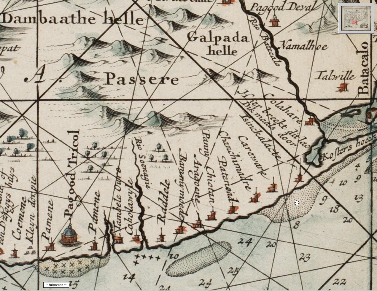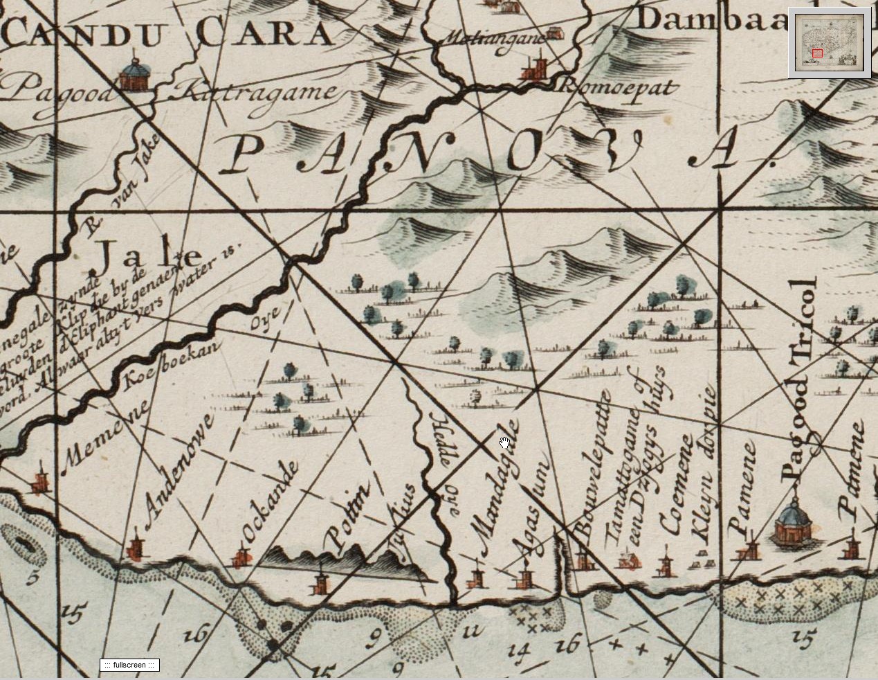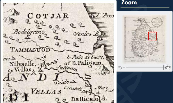 Dutch National Archives-17th Century Please notice the name 'Bodhiwilla', right above the village of Anogama. Today, this is 'Potuvil'. |